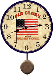All of our clocks and wall plaques are produced with fade-resistant inks, the artwork is carefully mounted on a laser cut 1/4" thick, wood panel. A special UV resistant coating is then applied with a brush for a durable textured finish. Quartz operated American Made clock movements are used. Clock hands and pendulums are slightly aged to match the vintage look of the artwork.
